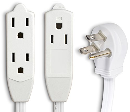 ANGLED PLUG: The Maximm extension cord is top quality featuring a 36° degree angled flat supply plug with 3 female outlet connectors for additional power.