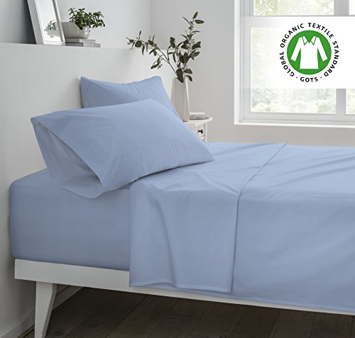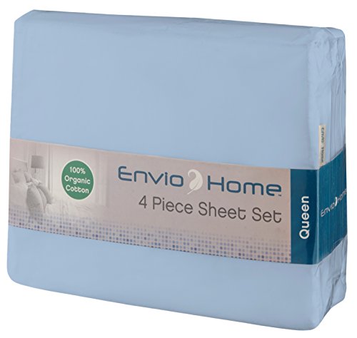 250 Thread Count Organic Cotton Solid Sheet Set By EnvioHome - Deep Pockets Fitted Bed Set - Ultra Soft and Breathable - 4 Pc - Blue, Full