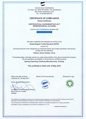 100% Organic Cotton - Certified to Global Organic Textiles Standards