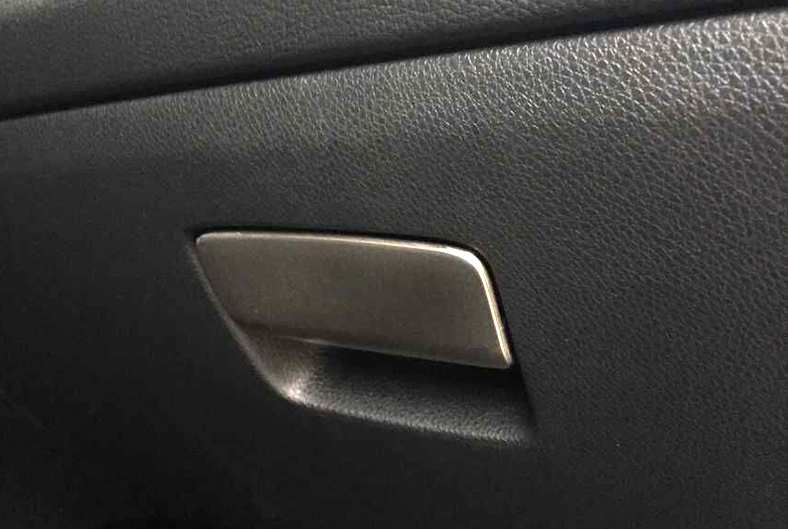 ・メルセデスベンツ専用のグローブボックスオープナーのステンレス製のカバーです。 グローブボックスの取っ手部分に取り付ければ内装に高級感がでて室内がグレードアップします。 専用設計ですので曲面までフィットします。