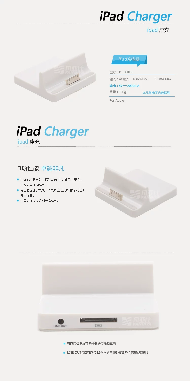 With iPad Dock, you get easy access to a dock connector port for syncing or charging, plus audio output port can be connected via an optional audio cable and powered speakers. iPad Dock also supports other iPad accessories, such as the iPad Dock Connector to VGA Adapter and the iPad Camera Connection Kit.