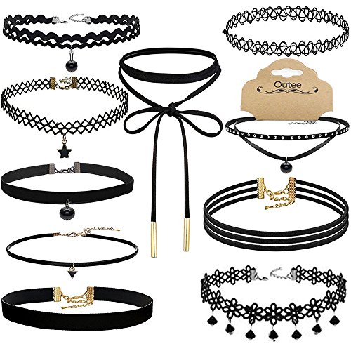 Outee 10 Pieces Chokers Necklaces Velvet Choker Tattoo Necklace Set for Women Girls