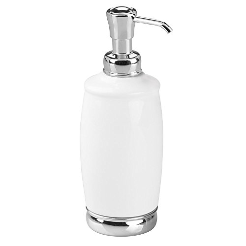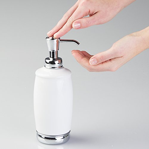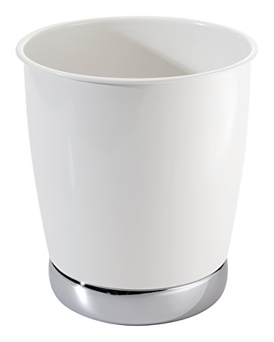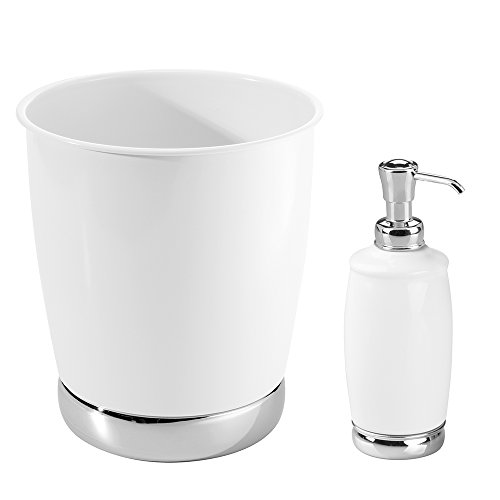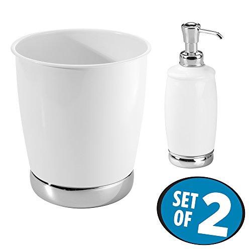 mDesign Soap or Lotion Dispenser Pump with Wastebasket Trash Can, 2 pc Bathroom Accessory Set - White/Chrome