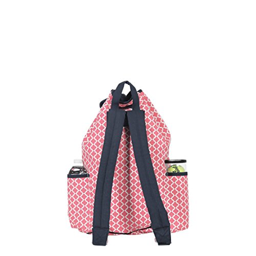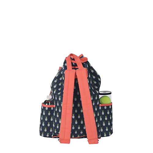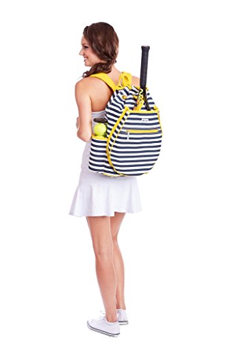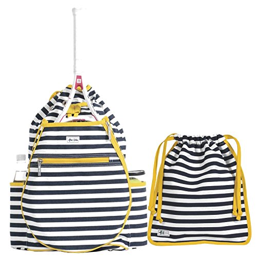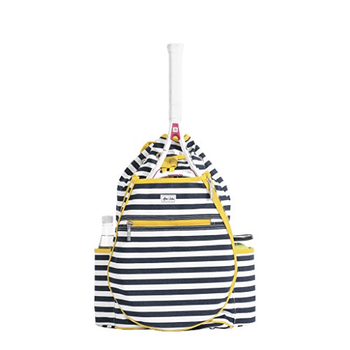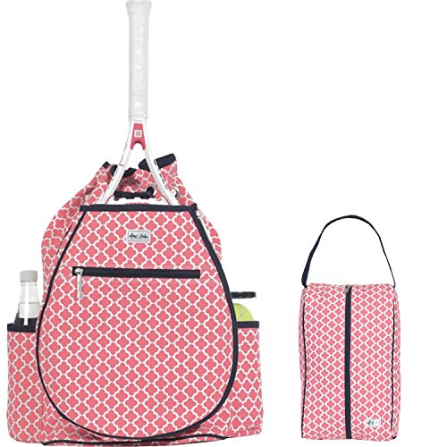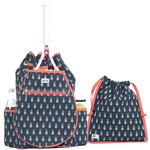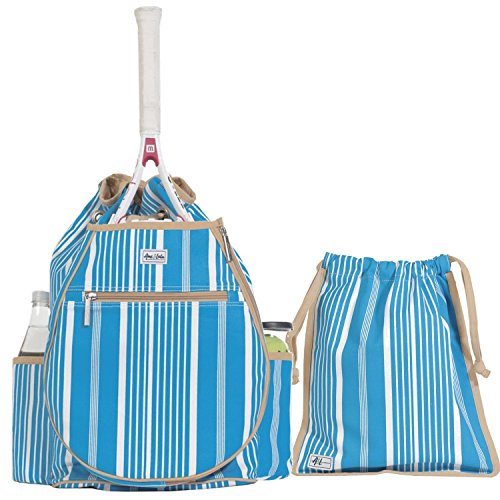 Studio : Ame Lulu Publisher : Ame Lulu Binding : Misc. Product Description Get noticed on the court in the Ame and Lulu Kingsley Tennis Backpack. Last year's best selling tennis bag now has a snap closure to help secure your possessions and padded adjustable straps for extra comfort. The exterior racquet pocket fits two oversized racquets. Bring a change of shoes with you and keep the rest of your gear clean, with the matching Charleston zippered or Raleigh drawstring shoe bag. These durable shoe bags are the ideal tennis bag insert for any fashion conscious player. 0