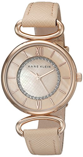 You'll adore the luminous design of this Anne Klein Rose Goldtone Blush Leather Strap Watch. A fabulously feminine mother of pearl dial is accented with clear crystals for endless sparkle, while the leather strap offers all-day comfort. Pair this lovely women's watch with anything from jeans to a cocktail dress.Feature
