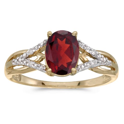 -. Title : 10k Yellow Gold Oval Garnet And Diamond Ring
