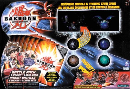 -. Feature : Morphing Marble & Trading Card Game / Battle Pack - Series 1 / Includes 6 Bakugan (colors may vary from photo) and 8 Metal Cards / Includes special foil card!