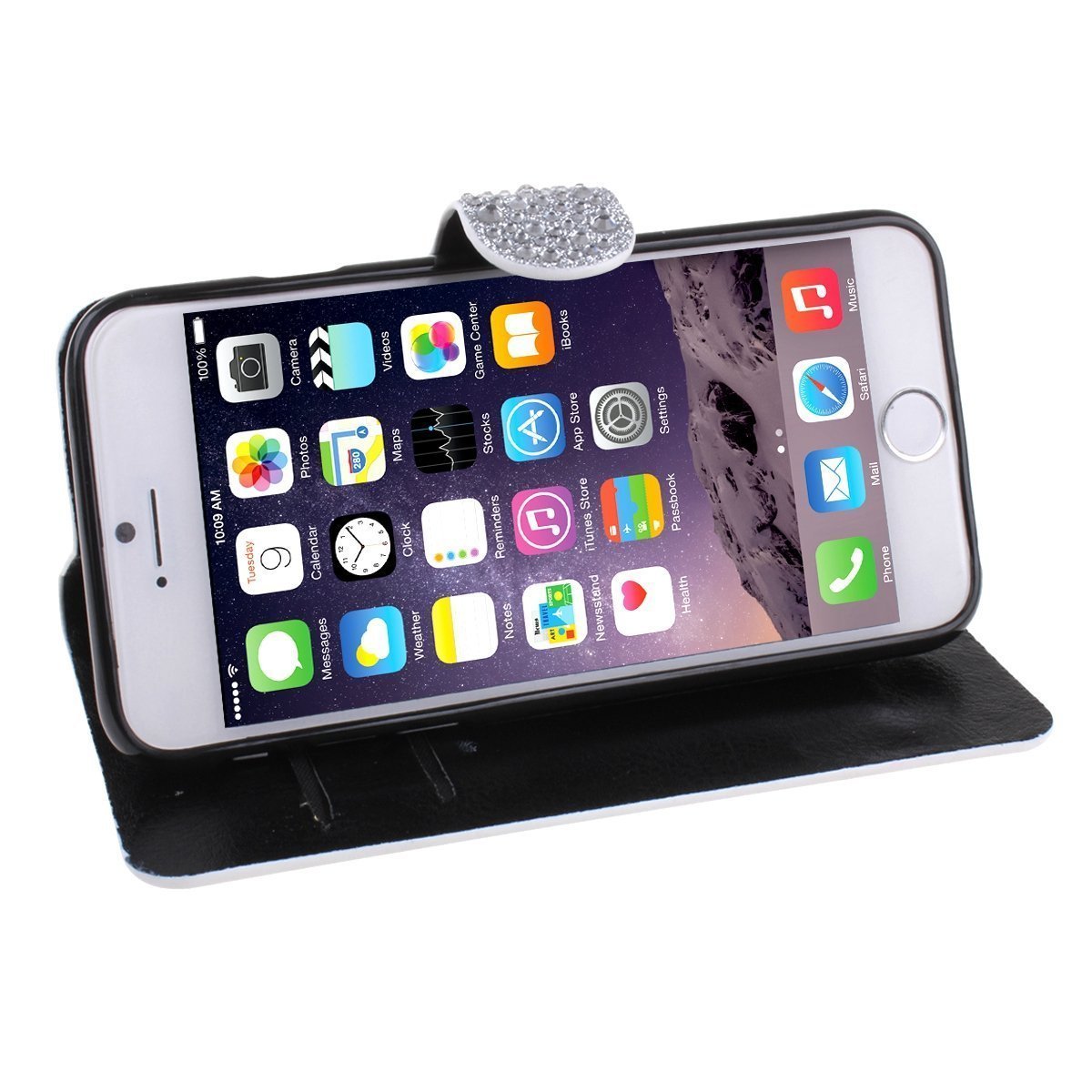 2) Transparent Rhinestone Earphone Jack included as a present.
