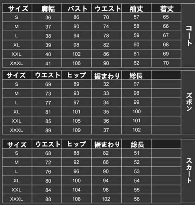 ■タイプ:タイプA(コート+ズボン) タイプB(コート+スカート)