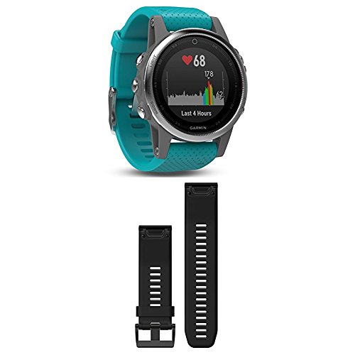 -. Title : Garmin Fenix 5S - Silver with Turquoise Band and 010-12517-00 Fenix 5X Quick fit 26 Watch Band - black Silicone