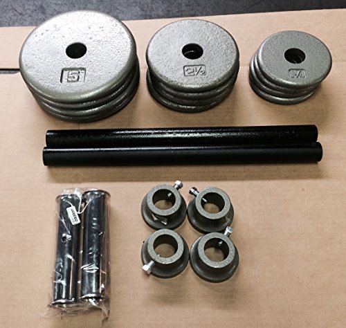 Product DescriptionA basic old-school 12 plate, 45 Lb, Dumbbell set. Collars have set screws (wrench included).0