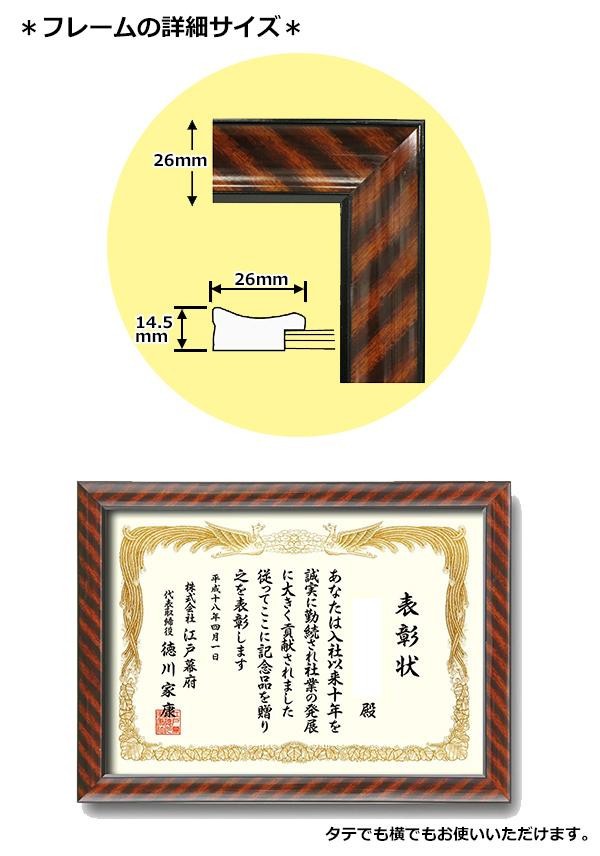 樹脂製のフレームでガラス仕様の賞状額です。表彰状や卒業証書、資格免許証などにお使いいただけます。裏から簡単に賞状を入れることができ、工具は不要です。 |