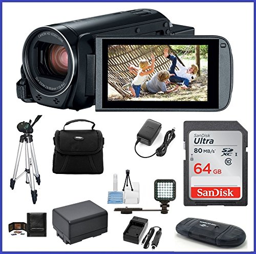 Canon VIXIA HF R800 Full HD Camcorder Ultimate Bundle, includes: 64GB SDXC Memory Card, LED Light, Tripod, Spare Battery and more...