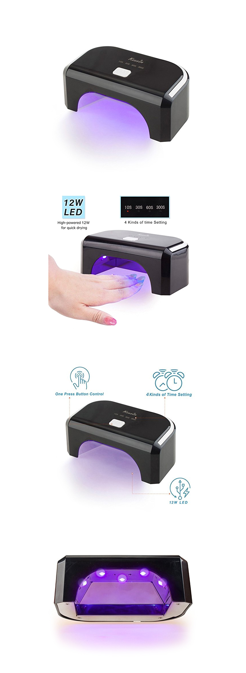 KEDSUM 12W LED Lamp-One-button Control-10s, 30s, 60s