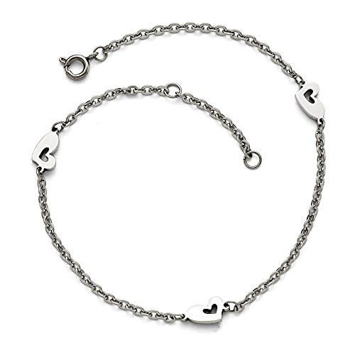 -. Title : Stainless Steel Polished Hearts with 1in extension Anklet