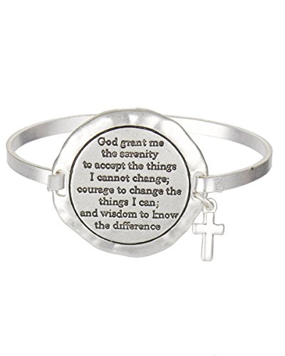 -. Title : Serenity Prayer Hammered Medallion Brushed Finish Inspirational Bangle Bracelet - Jewelry Nexus