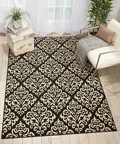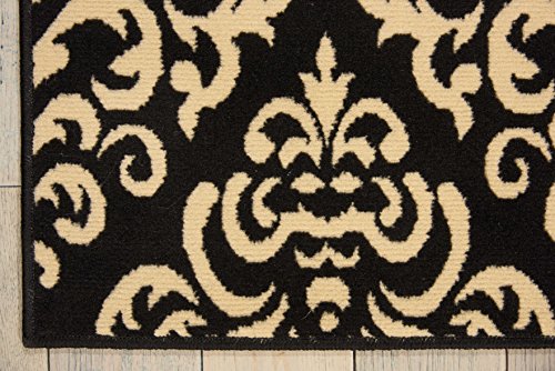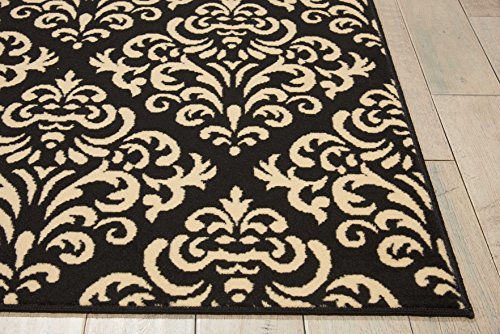 A Damask design takes a daring turn when it lines up with glamorous, geometric precision and is displayed in statement-making shades of Black and cream. Power loomed from a marvellously enduring yet supremely soft 100% polypropylene for long wear and low maintenance, this grafix area rug from Nourison will lend a dash of drama to any room.Feature