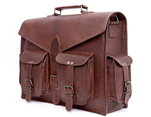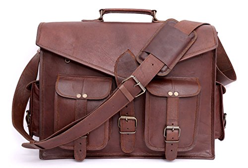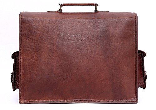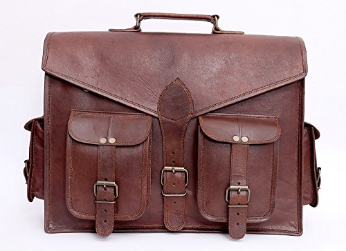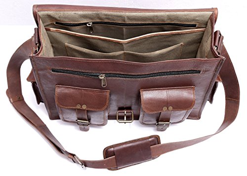 -. Feature : Handmade from quality goat leather, naturally tanned (not dyed) that softens and darkens with regular use. / Size (WxHxD): approximately 15x11x4 inch (perfect for documents, laptop / notebook, netbook or iPad) / Strong brass polished buckles, rustproof. / Adequately long and adjustable leather shoulder strap / lovely green lining canvas and use as a office bag laptop bag leather messenger satchel laptop bag
