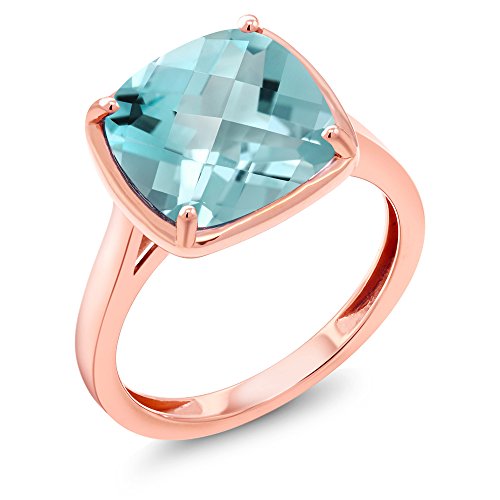 -. Title : 4.65 Ct Cushion Checkerboard Sky Blue Topaz 14K Rose Gold Ring