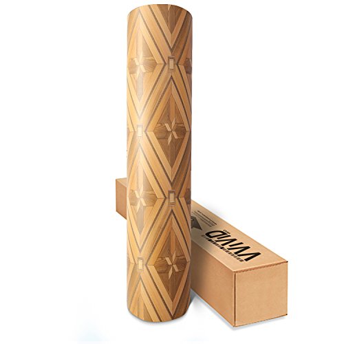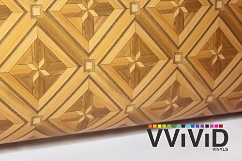 VVIVID Parquette Inlay Mosaic Wood Grain Faux Finish Textured Vinyl Wrap Contact Paper Film for Home Office Furniture DIY No Mess Easy to Install Air-release Adhesive (17.75" x 48")