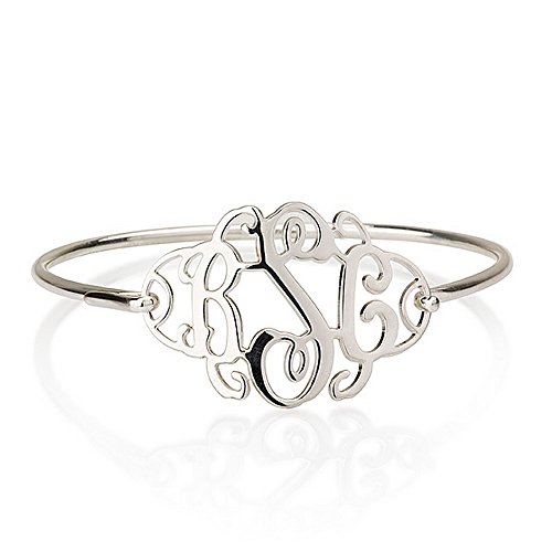 -. Title : Monogram Bracelet 1.25" Sterling Silver Personalized Name Bangle Bracelet