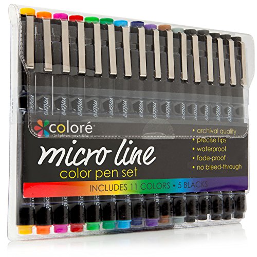 -. Title : Colore PRECISION Ultra Fine Tip Micro Line Pens – Waterproof & Vibrant Color Inking Pen Set With Variety Nib Sizes (16 Pack)