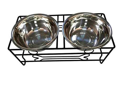 Product Description Material: Anti-bacteria Stainless Steel bowls with Iron Stand. Size: 17.91 X 8.46 X 7.09 inches. Perfect for large dog. Package include: 1 set pet feeder(include two bowls and one stand) 0