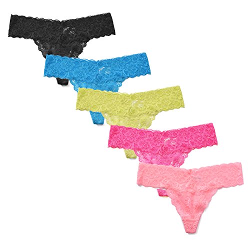-. Binding : Apparel -. Brand : Libella -. Department : womens -. Feature : MATERIAL - 96% Polyamide 4% Elastane / NICE DESIGN - The lace thongs are designed with low rise and see through stretched panties with cotton lining / GREAT VALUE - The package includes 5 different bright rainbow color lace thongs, which bring you sexy looking and joyful mood / ATTENTION - Please hand wash, lace needs care so machine wash may caused the panties fall apart / SIZE CORRECTED - Approximated measurements in description below -. IsAdultProduct : 0 -. Model : 3211-P -. ProductGroup : Apparel -. ProductTypeName : UNDERWEAR -. Title : Libella Women's Lace Thong Soft Sexy Lingerie Panties Intimates Set Cheeky Thongs Underwear,5 Pack
