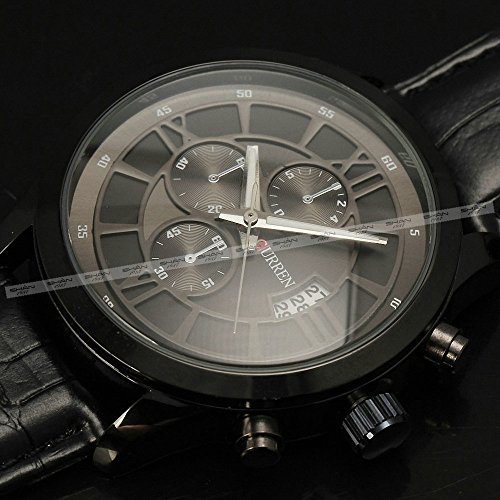 -. Title : Men's Quartz Wristwatch Roman Number Symmetry Style Annular Dial Leather Strap 3-Hands Sub-dial