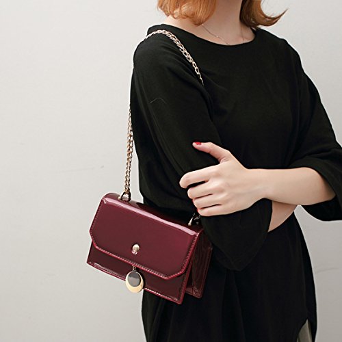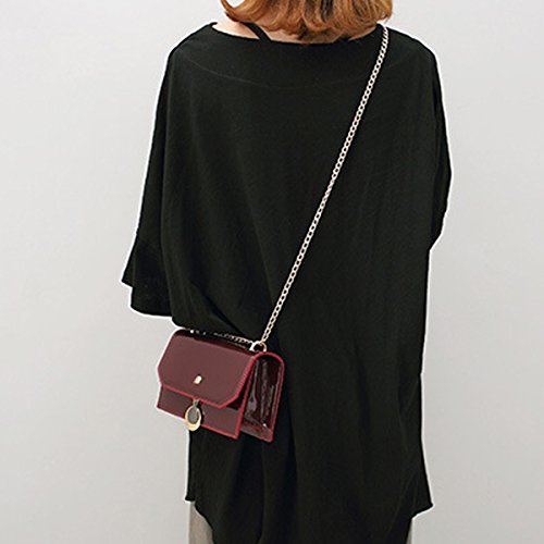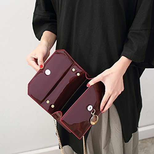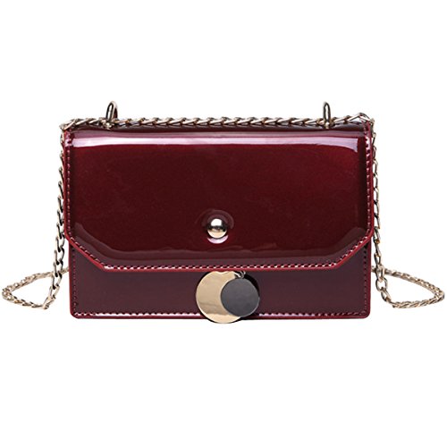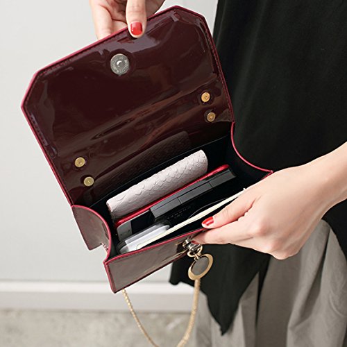 Women Solid Color Patent Leather Cross Body Bag Chain Shoulder Bag Mini Handbag