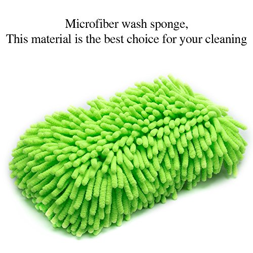 The washing sponge made of microfiber chenille material. Microfiber is the best car washing material, because it's super-absorbent, soft, lint-free and scratch-free. You can use the wash sponge on any surface anytime without fear.