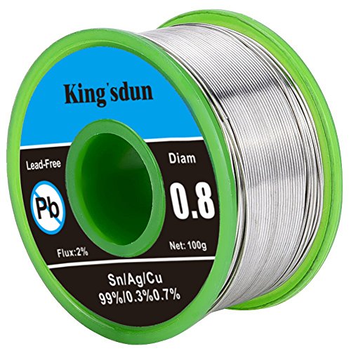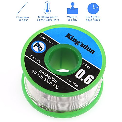 Kingsdun Soldering Tinned Wire with Rosin Core, Lead Free Solder Wire 0.6mm Sn99 Ag0.3 Cu0.7 for Jewelry,Electronics Repairs,100g