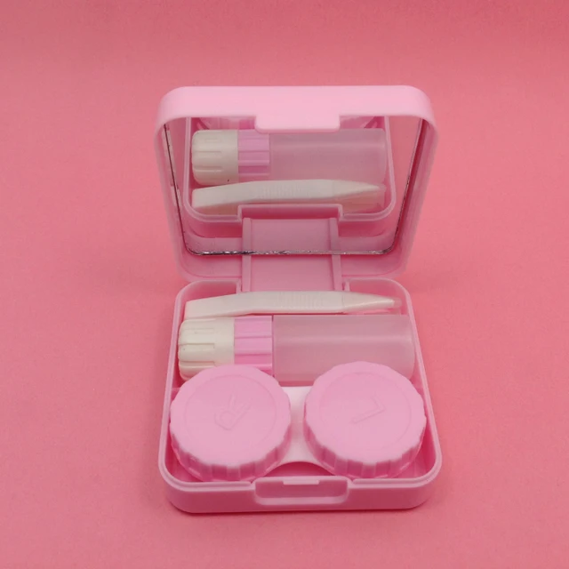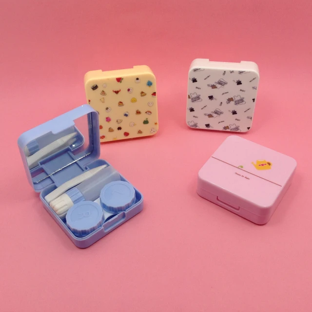 뜨거운 판매 신선한 귀여운 콘택트 렌즈 케이스 여성 거울 플라스틱 안경 케이스 아름다움 한국어 스타일 콘택트 렌즈 상자