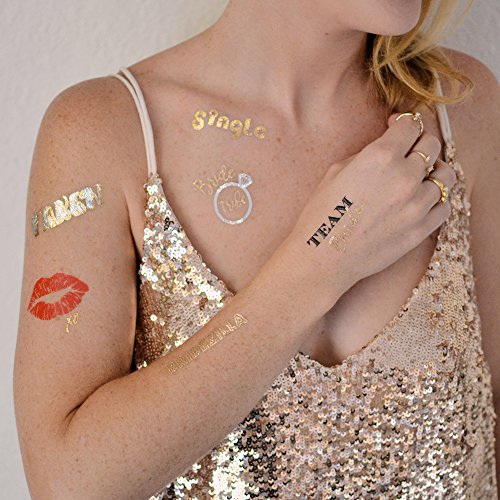 Flash Tattoos Bachelorette Variety Set of 27 assorted premium waterproof metallic gold temporary party tattoos : Bride tribe, bachelorette party, Team Bride, Party Supplies