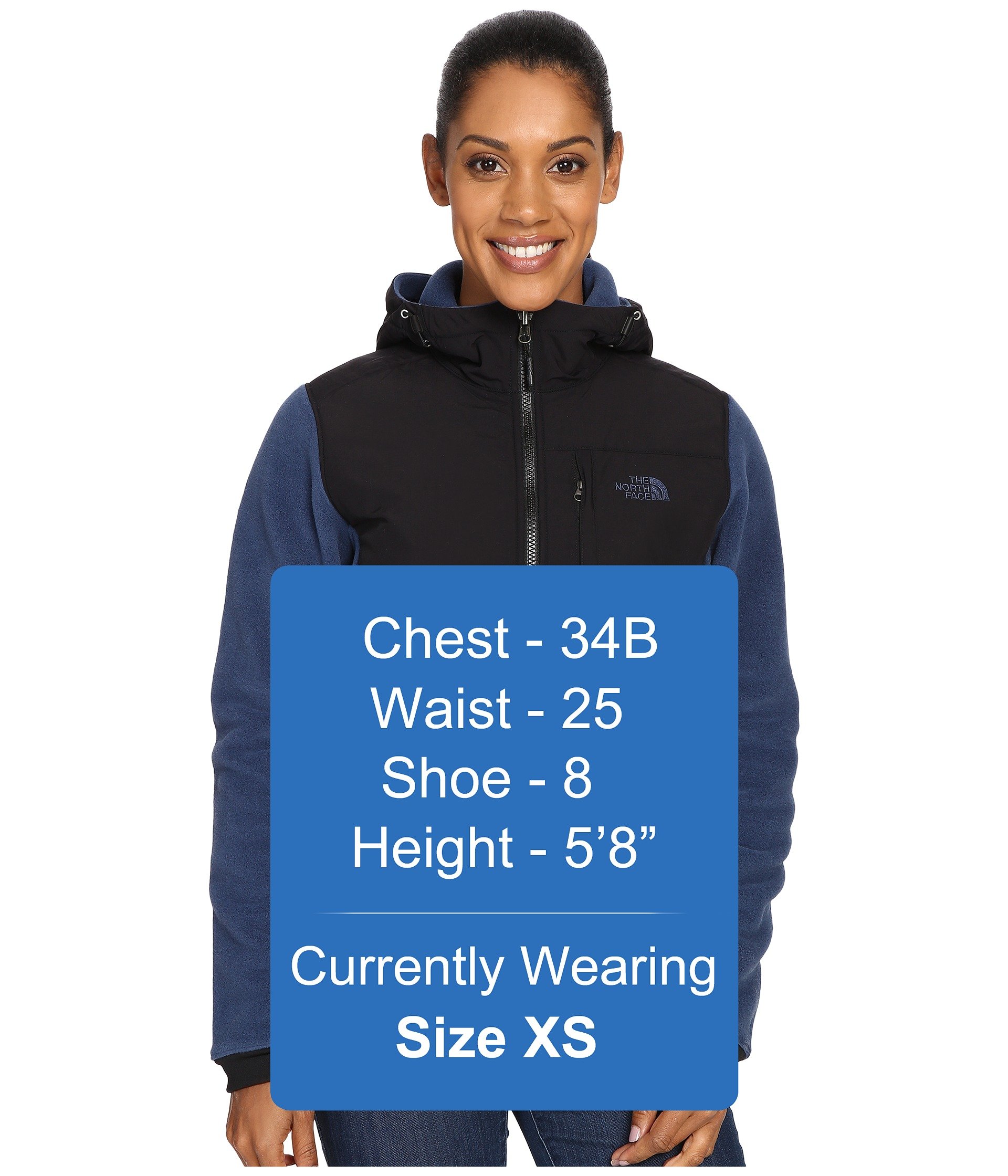 | Product Information SKU: #8697850Please note that this style is either discontinued and/or from a previous season.The natural evolution of The North Face? icon, the Denali 2 Hoodie updates the signature look with high-performance fleece, bold colors, and a recycled fabric construction.Relaxed Fit.Zip-in design pairs with compatible garments from The North Face? triclimate line.Polartec? 300 Series fleece: ? Highly lofted, double-sided poly fleece increases internal surface area to more effectively retain warmth. ? Inherently hydrophobic synthetic fibers speed passage of moisture vapor to maintain breathability. ? DWR (durable water repellent) finish improves water-resistance to increase the quick-dry performance. ? 300 Series offers the heaviest weight for cold-weather layering.Overlay: ? Woven overlay placed at the collar, yoke, forearms, and hem. ? Abrasion-resistant fabric wears well under pack straps. ? 70D x 160D, 118 g/m² fabric weight.Attached three-piece hood.Reverse coil-zip closure with inner draft flap.Long sleeves.Elastic-bound cuffs.Covered zip chest pocket with inner headphone cord router.Zip hand pockets.Droptail hem with adjustable drawcord.Solid Fleece: 100% recycled polyester; Heather Fleece: 65% recycled polyester, 35% polyester; Overlay: 100% nylon.Machine wash and tumble dry.Imported.Product measurements were taken using size XS. Please note that measurements may vary by size.Measurements: Length: 26 in |