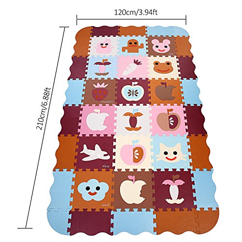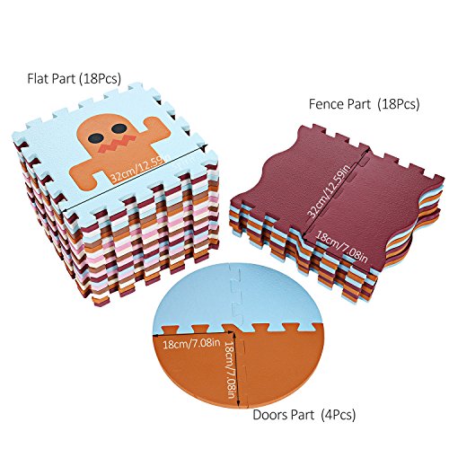 Large Play Mat: 40 Pcs playmat tiles can be placed in different style (fence up or flat).This play mat can creat the area 6.88*3.94ft /210*120cm in flat way with rectangular shape,which is great for baby Tummy time,perfect play ground.