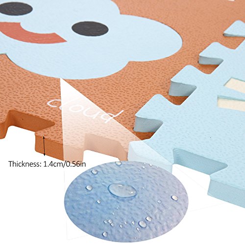 The thickness of play mat is 0.56 inch, strong flexibility.The cushioned mat protects against hard falls when kids crawl, tumble, and topple over when learning to sit and stand.