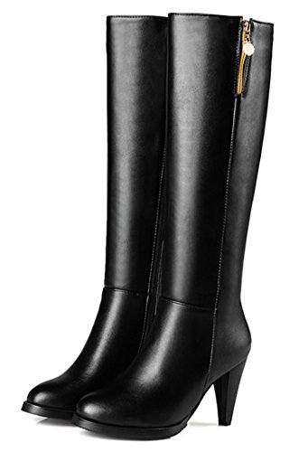 Binding : Apparel Product Description This pair of shoes is for women, girls, young ladies and office workers. You will look fashion and elegant when wearing them. The heels measure 3.1 inches. You will look slimmer and slender in their high heels. Its platform is about 0.25 inch. So you will not feel too tired when walking with them. This pair of shoes features solid upper and zipper closure. The design of round toe will offer you a cute look. The shoe is faux fur lined. The shaft is about 14.9 inches which could hold you ankle from spraining. The sole is made of good rubber. It's antiskid and you will feel comfortable in their soft bottom. They are of high quality. Come on and take them away! 0
