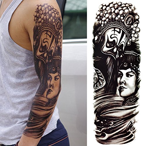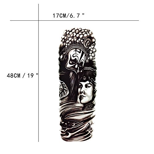 TAFLY 2 Sheets Full Arm Temporary Tattoos—Chinese Beijing Opera Farewell My Concubine