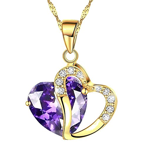 Sinlifu Womens 18K Yellow Gold Plated Necklace Chain Amethyst Crystal Heart Purple Pendant (Purple,18")