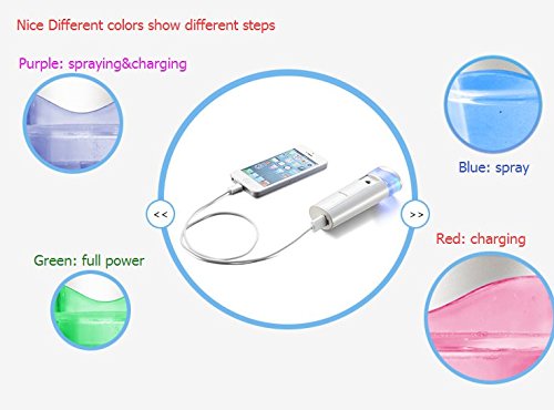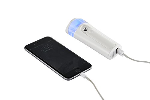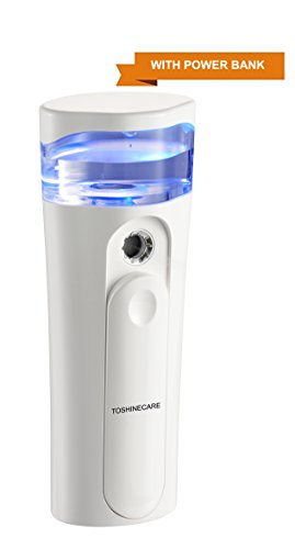No timer: you can spray without any time limitations Power bank function, 2200mAh of rechargeable battery Multiple function: Removes Dirt, Oil, other impurities and Makeup; Melts away Dead Skin Cells; Aromatherapy; As Nano steam relaxes and softens your skin; deeply moisturizing to relieve fatigue;30 s spa facial treatment; eyelash extensions, Direct Skin Indulgence Treatment and so on. Visual color reservoir, which has 4 different LED light display:Blue: mist spraying / Red: charging / Green: full charge / Purple: mist spraying while charging Product Description Color: PERAL WHITE What is Nano Facial Mist Spray? Nano Facial Mist Spray is a product that utilizes nanotechnology to convert water into mist of nanoscale particles, for basic nursing for facial moisturizer and beauty equipment. The primary use of a facial steamer is to open the pores and stimulate skin cells, which helps to improve circulation. Opening the pores can help to loosen dirt and bacteria, making standard cleansers more effective. It can also be beneficial in naturally treating sinus congestion. Why choose TOSHINECARE Nano Facial Mist Spray? 1. Top Rated of Nano Facial Mist Spray 2. 10 Years experience in design and manufacture 3. 2200mAh External Battery 4. Newly version in 2016, stand itself for mist spray What's in the gift box? TOSHINECARE handy nano mist spray x 1 USB Cable x 1 User manual x 1 Water-Added cup x1 Carry bag x 1Feature