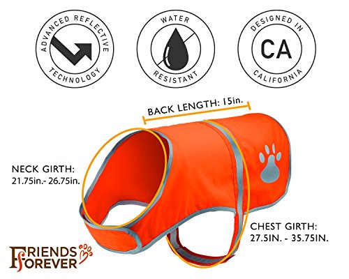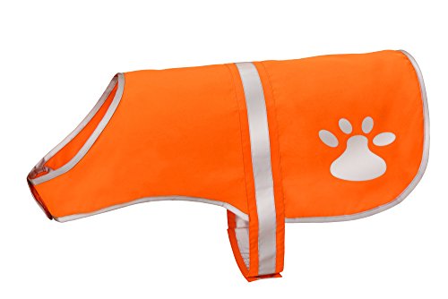 - Bright orange color is trimmed in reflective strips and reflective paw print for superior visibility.