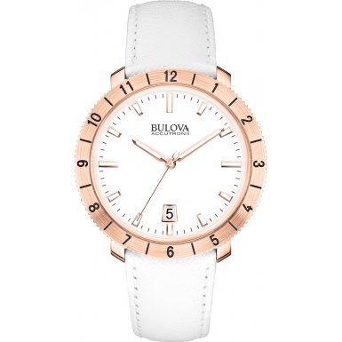 -. Title : Bulova Accutron II Moonview White Leather and Dial Watch