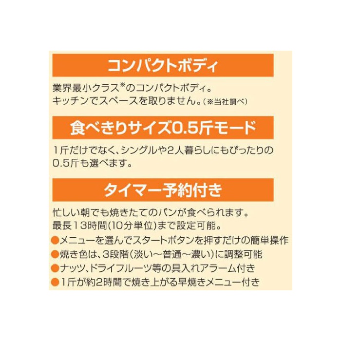 타이머:최장13시간(10 분단위) 고, 식빵의 가루(소맥분)용량:150g(0.5근)250g(1근)