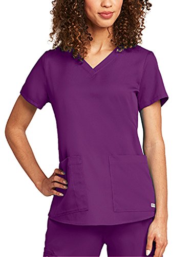 Grey's Anatomy Women's Two Pocket V-Neck Scrub Top with Shirring Back