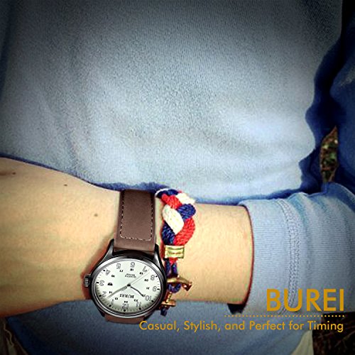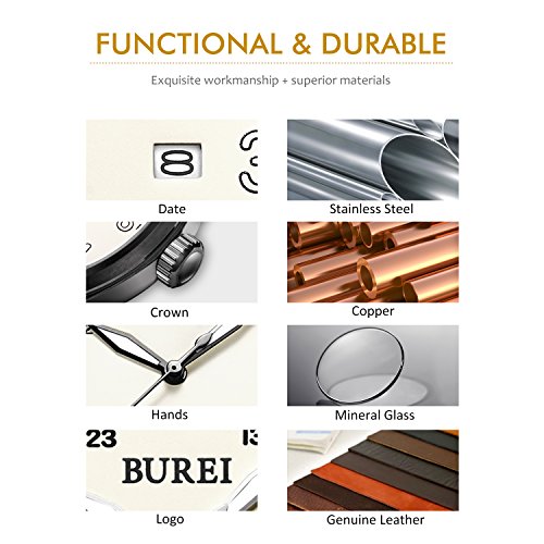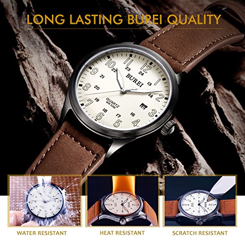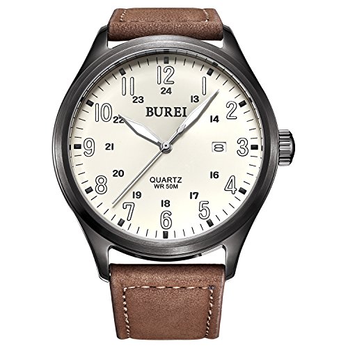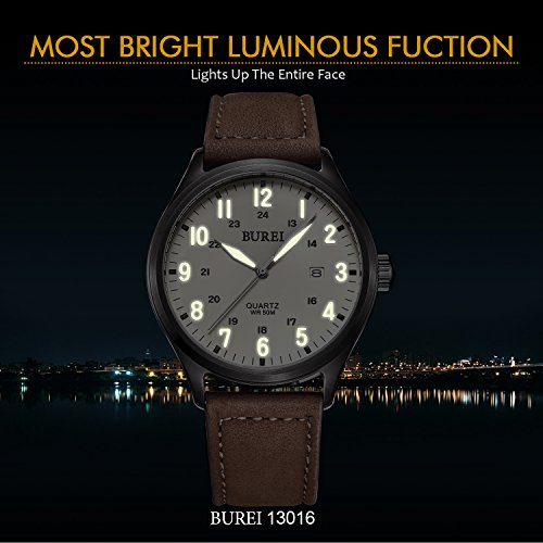 -. Title : BUREI Unisex Date Quartz Watches with White Luminous Analog Arabic Numerals and Brown Leather Strap