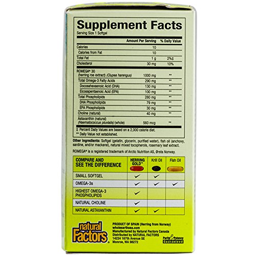 -. Feature : Fast-absorption omega-3 phospholipids. / Rich in omega-3 DHA and EPA, as well as choline and astaxanthin. / The softgels are small and easy to swallow. / No fishy aftertaste. / Comes from 100% sustainably harvested Norwegian herring roe and provides more omega-3 phospholipids than krill oil.