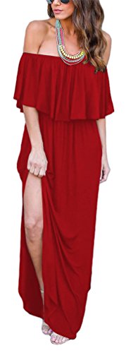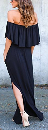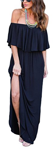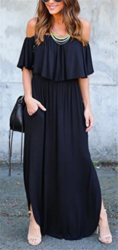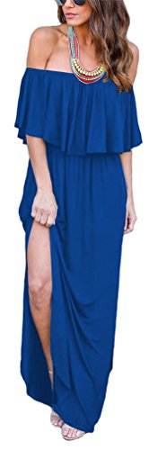 ETCYY Women's Summer Off Shoulder Ruffles Pocket Split Long Maxi Dress