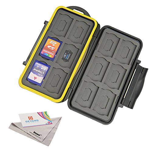 Deyard K020 Waterproof Memory Card Case Shockproof Memory Card Carrying Case Protector Box: 24 Slots for 12 SDHC / SDXC Cards and 12 Micro SD Cards - Upgraded Version with Deyard Superfine Fiber Cloth