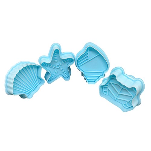 HUELE 4pcs/set Sea Animal Cookie Cutters Set Plungers for Cake Decoration Fondant Bakeware